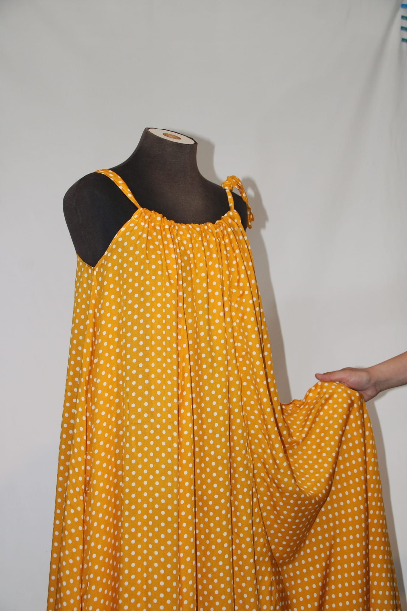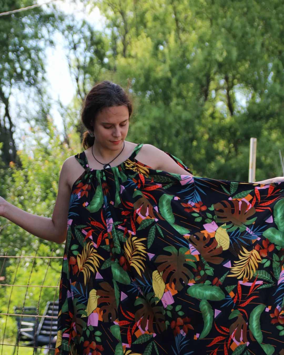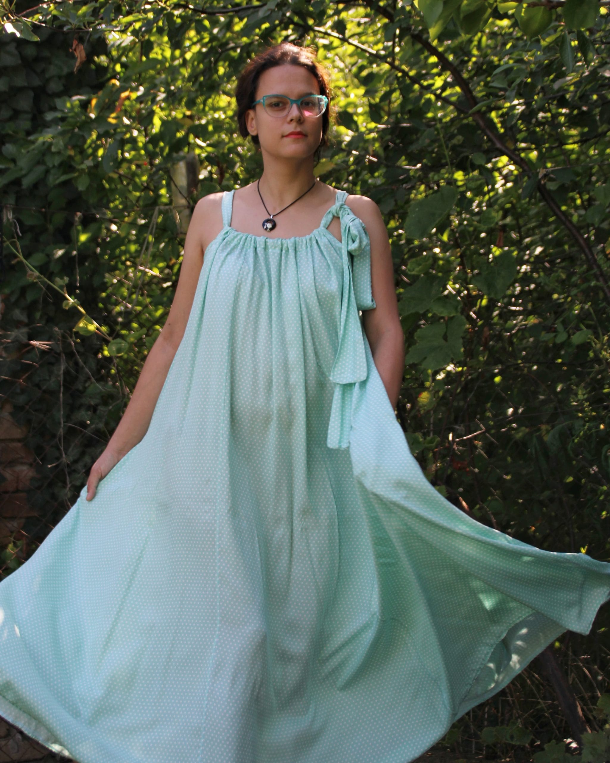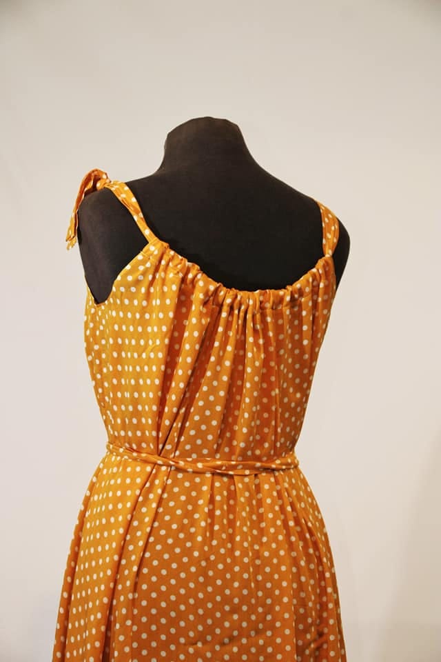 Haljina sa širokim bretelama ima veoma elegantne nabore, a uz podešavanje dužine bretala lako ćete izabrati svoju dubinu dekoltea. Široka haljina biće originalan oversize model, ali ukoliko želite strukiranu haljinu, dovoljno je da zavežete pojas oko struka.